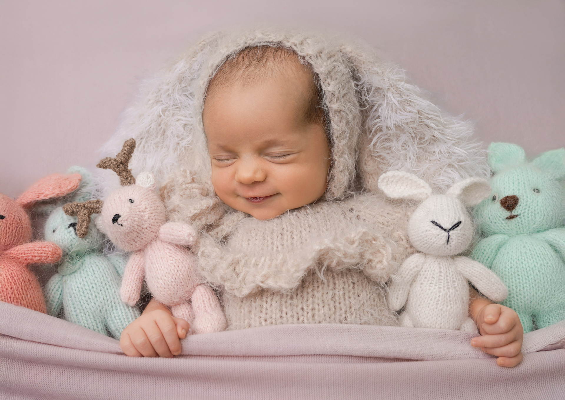 Для того, чтобы получить достаточное количество красивых кадров возраст ребенка должен быть не младше 5 дней и, желательно, не старше 21 дня. Именно это период является самым оптимальным для проведения фотосессии, так как большую часть времени ребёночек будет крепко спать. Позже у малышей могут болеть животики, сон становится короче и более поверхностный.
